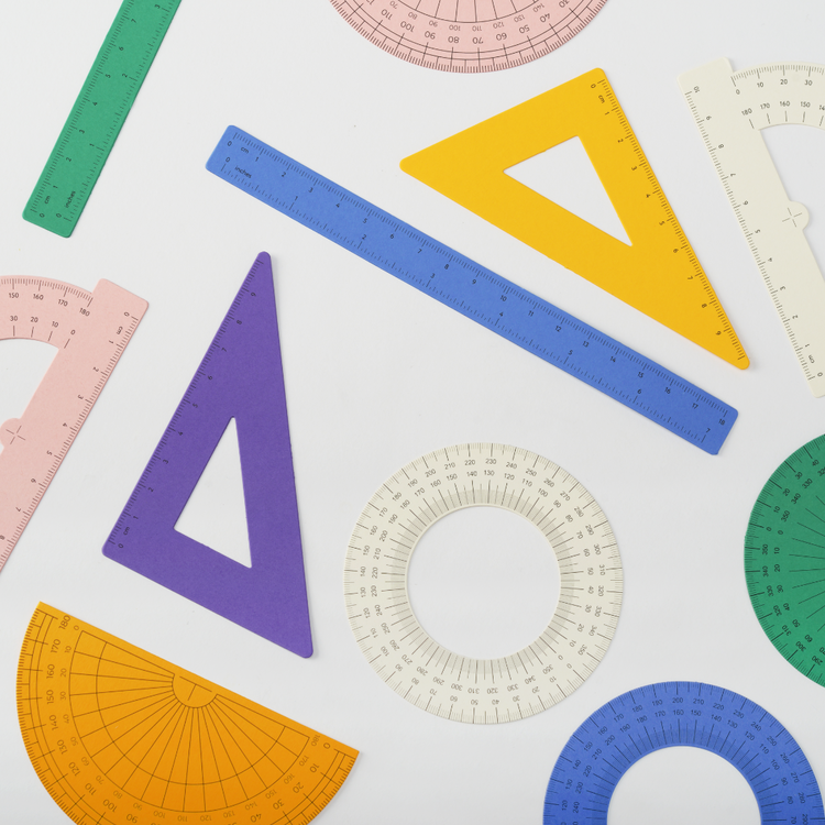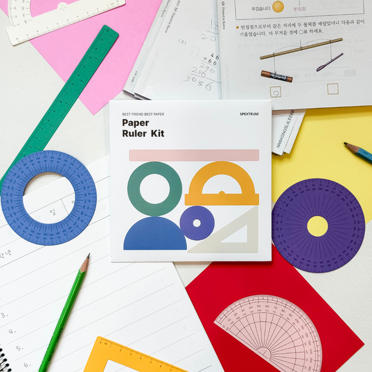 The Paper Ruler Kit reimagines the familiar ruler and protractor through the playful medium of paper.